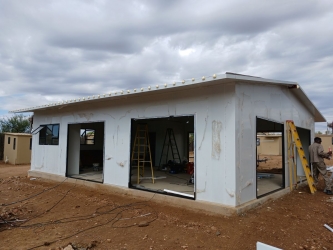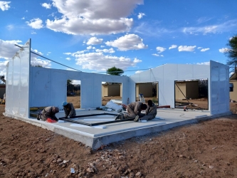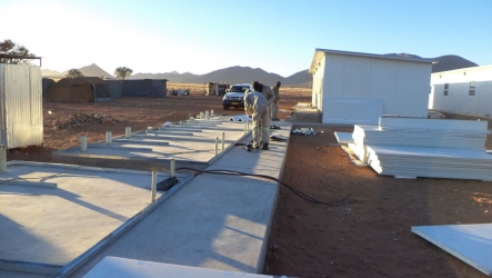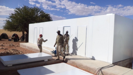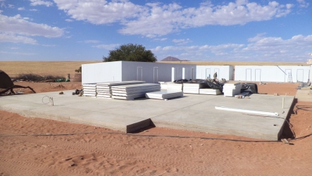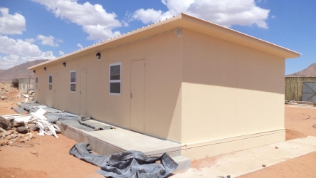 These structures require a concrete slab to be casted to construct your prefabricated shelter of choice. Material is transported to site, upon which assembly takes place. This is a popular mid to long term solution. The prefabricated structure can be disassembled and moved to a new location, but the concrete lab stays intact.